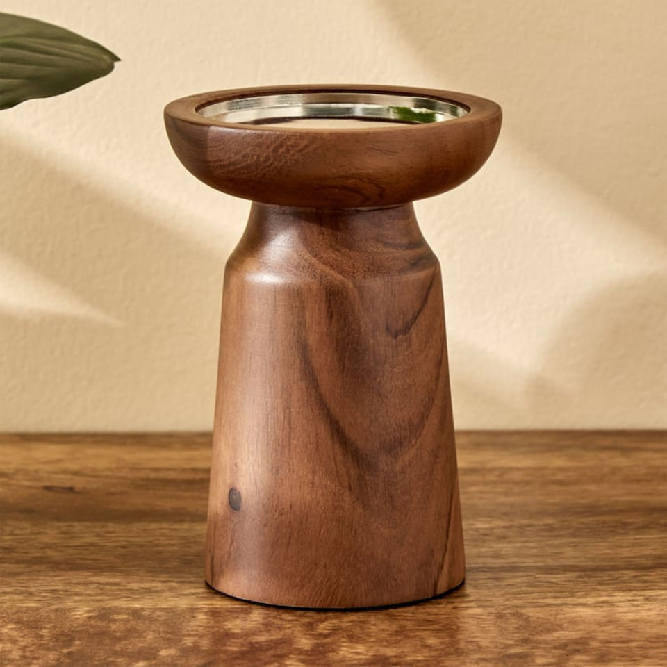 Modern Wooden Candle Holder Walnut Finish Elegant Pillar Candle Stand Minimalist Home Office Living Room Table Decorative Accent
