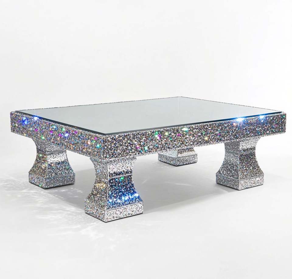 Modern Wooden Design Mirrored Crushed Crystal Decor Solid Wood Rectangle Coffee Table Center Table Tea Table for Home Hotel Use