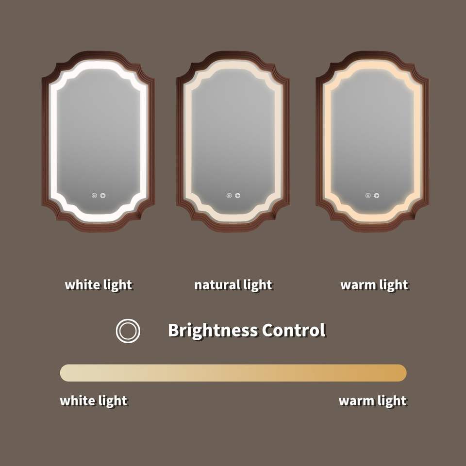 Modern Wooden Frame LED Bathroom Mirror with Touch Switch Salon-Style Illuminated Anti-fog Mirror