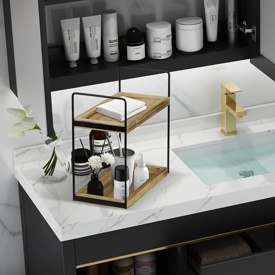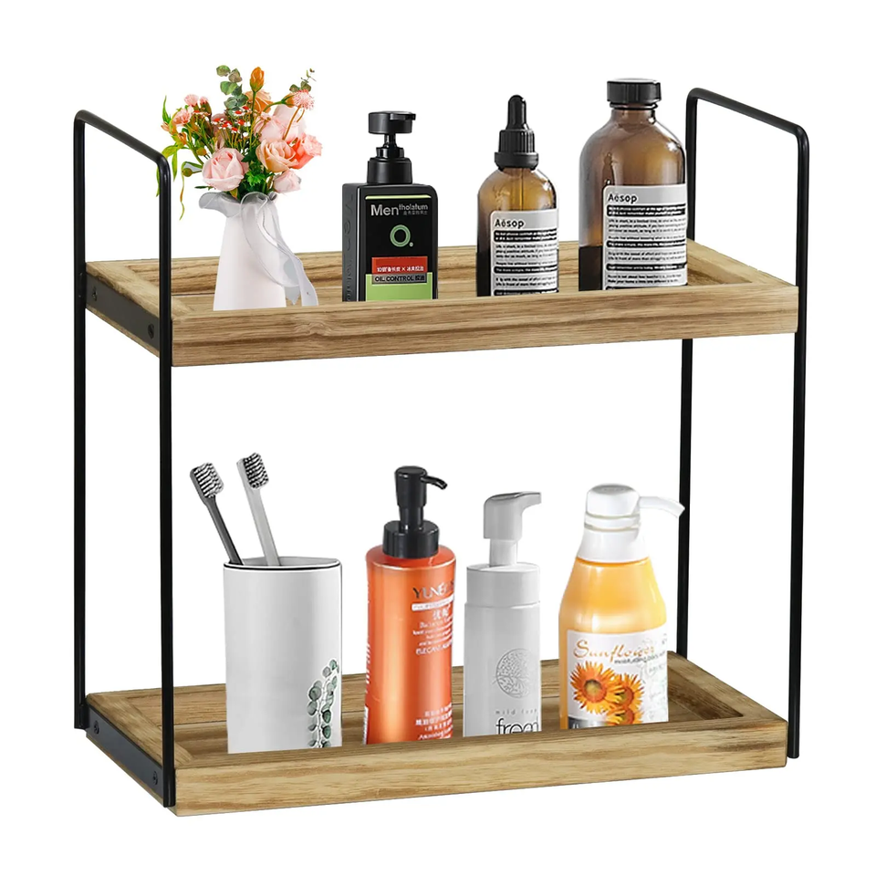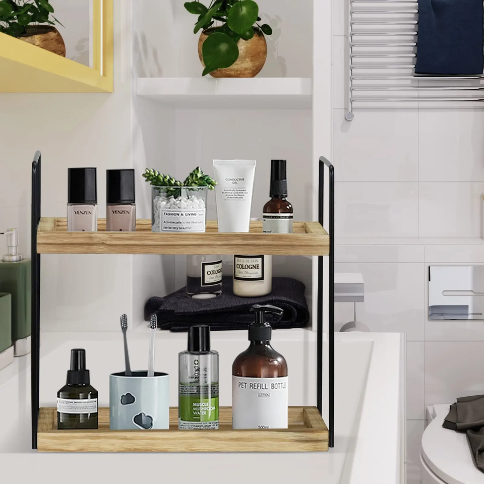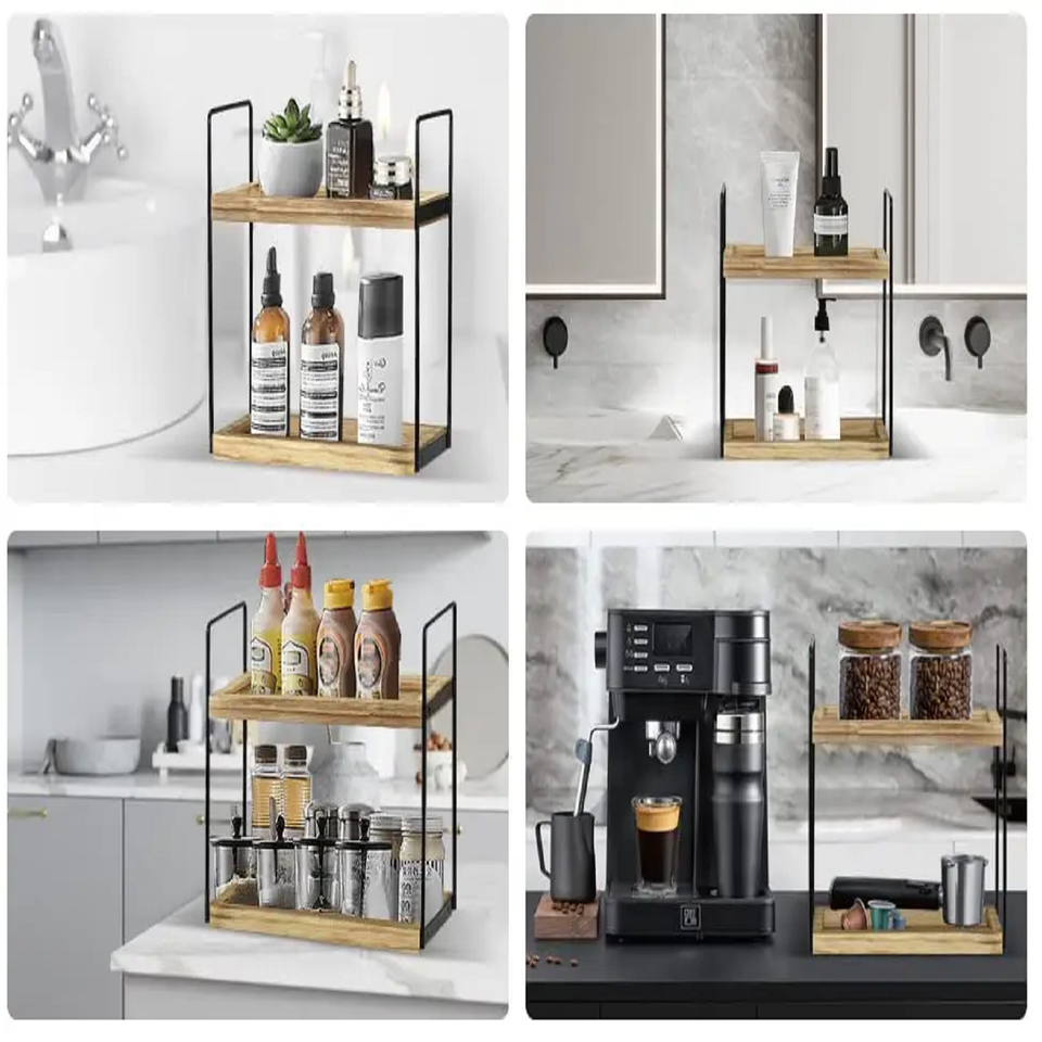 Modern Wooden Freestanding Kitchen Shelf Display Stand Desktop Shelf Organizer Rack for Bathroom & Kitchen Glass Spice Rack