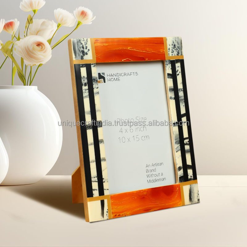 Modern Wooden Photo Frame With Decorative Resin Inlay Work Stylish Handmade Frame For Tabletop Home Decor