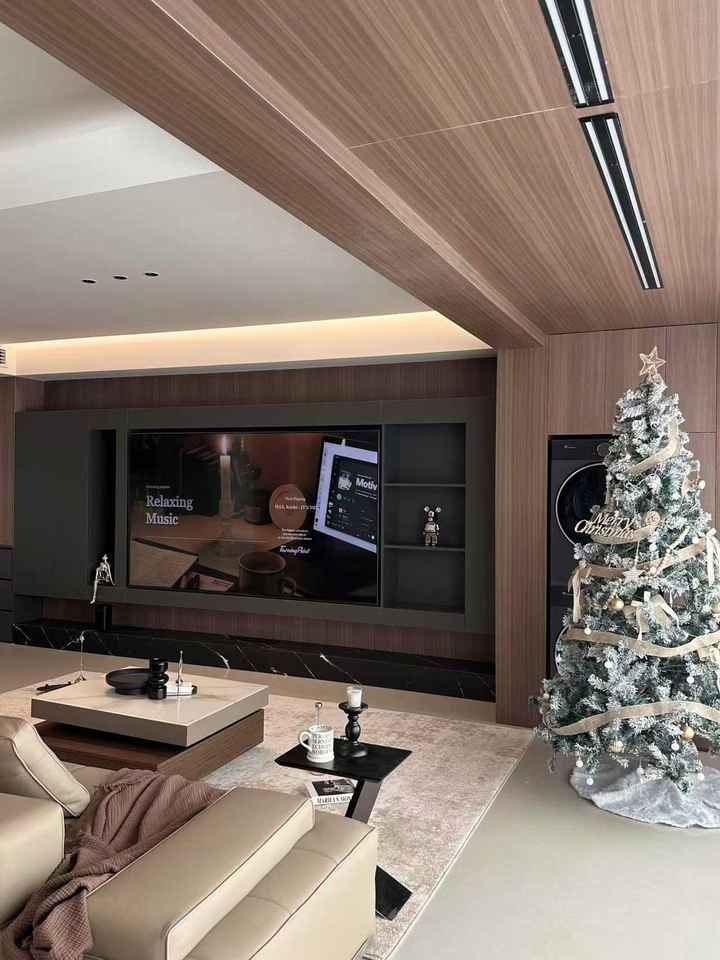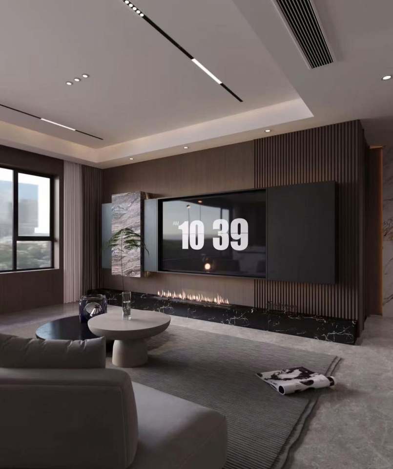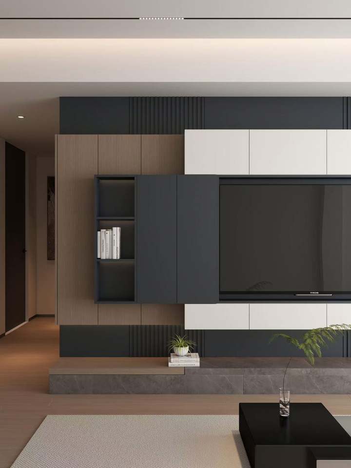 Modern Wooden TV Cabinet Wall-mounted LED TV Stand for Home Elegant Glass Design for Living Room Furniture