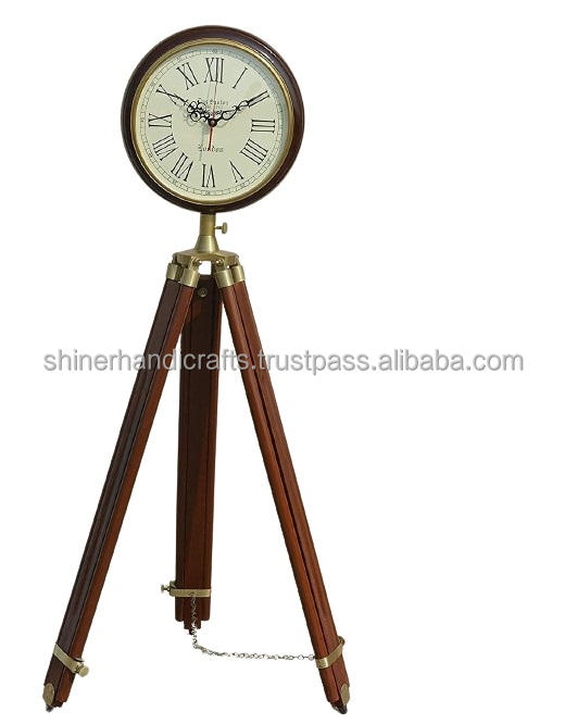 Modern Wooden Tripod Clock Adjustable Room Floor Clock Vintage Style Industrial Tripod Clock for Kitchen Living Room Outdoor