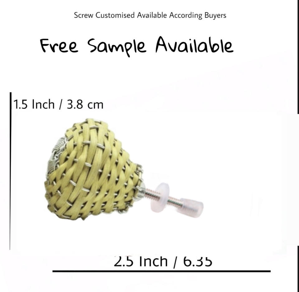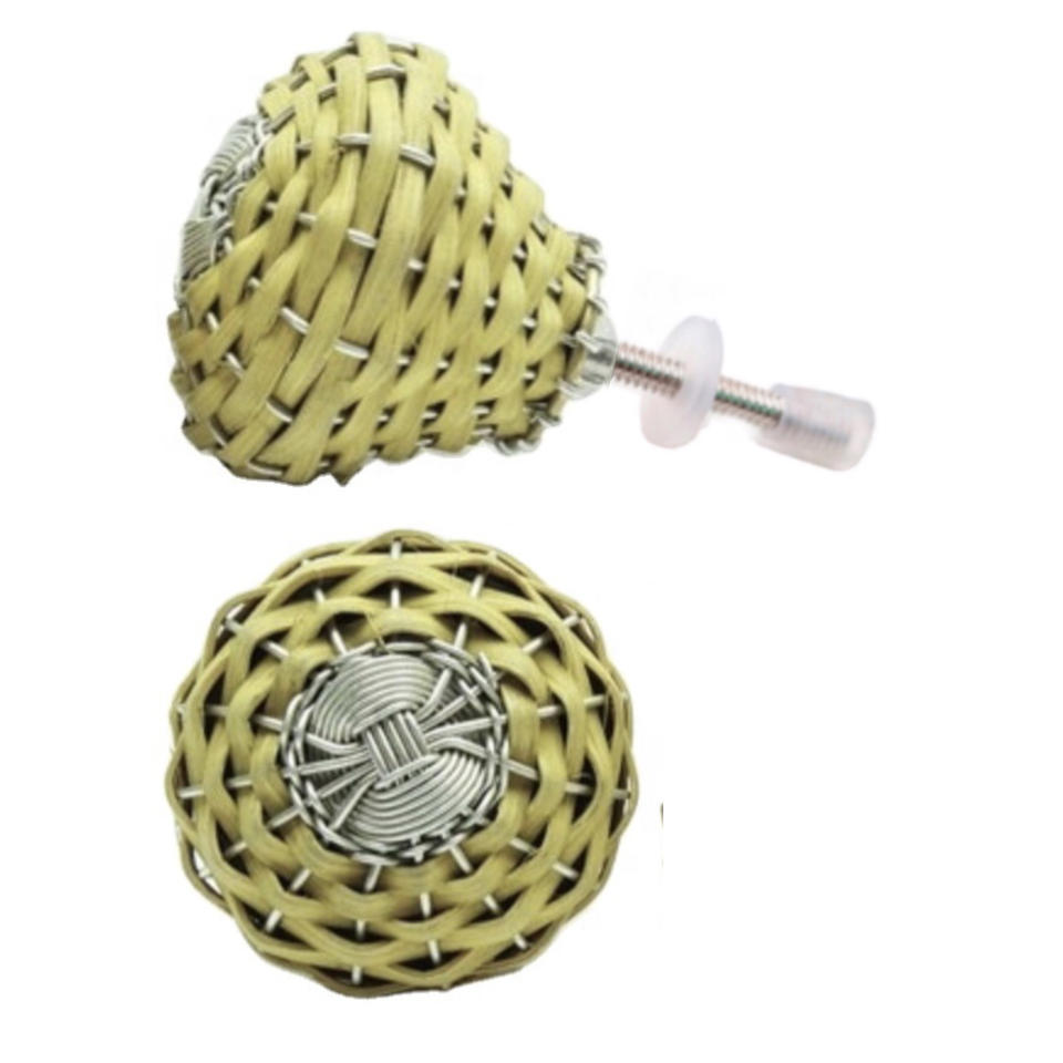 Modern Yellow Bamboo Woven Metal Dresser Drawer Door with Ceramic Knobs & Pull Handle for Kitchen Bathroom Bedroom Living Room