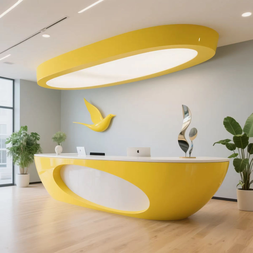 Modern Yellow Extendable Curved Reception Desk with Oval Cutout for Office Building Hotels & Malls