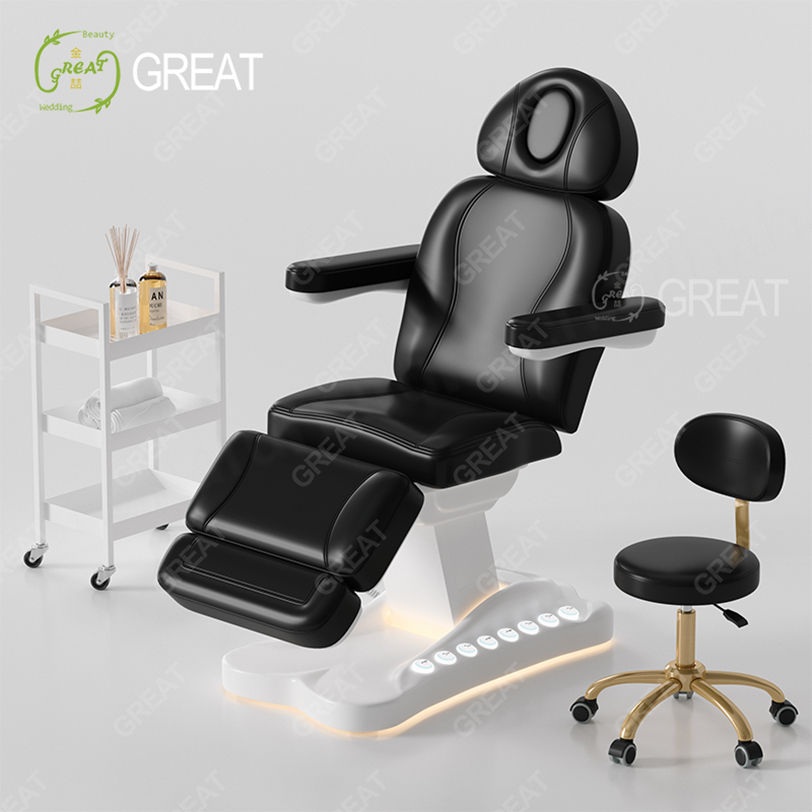 Modern Yellow White Facial Spa Massage Table Bed 4 Motors Adjustable Electric Spa Bed With Foot Control and Stool Set
