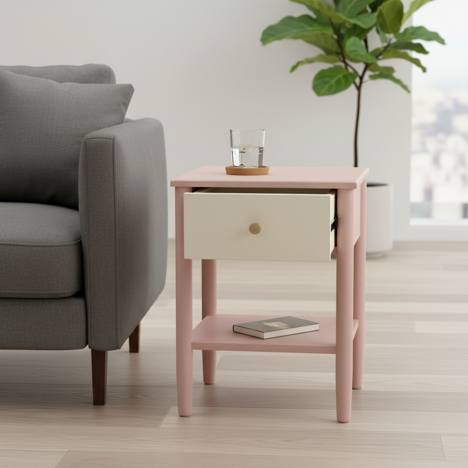 Modern color Dusty Rose & Cocomilk Pastel Coffee Table with Durable Rubber Wood MDF for Dining Room Restaurant Home Decoration