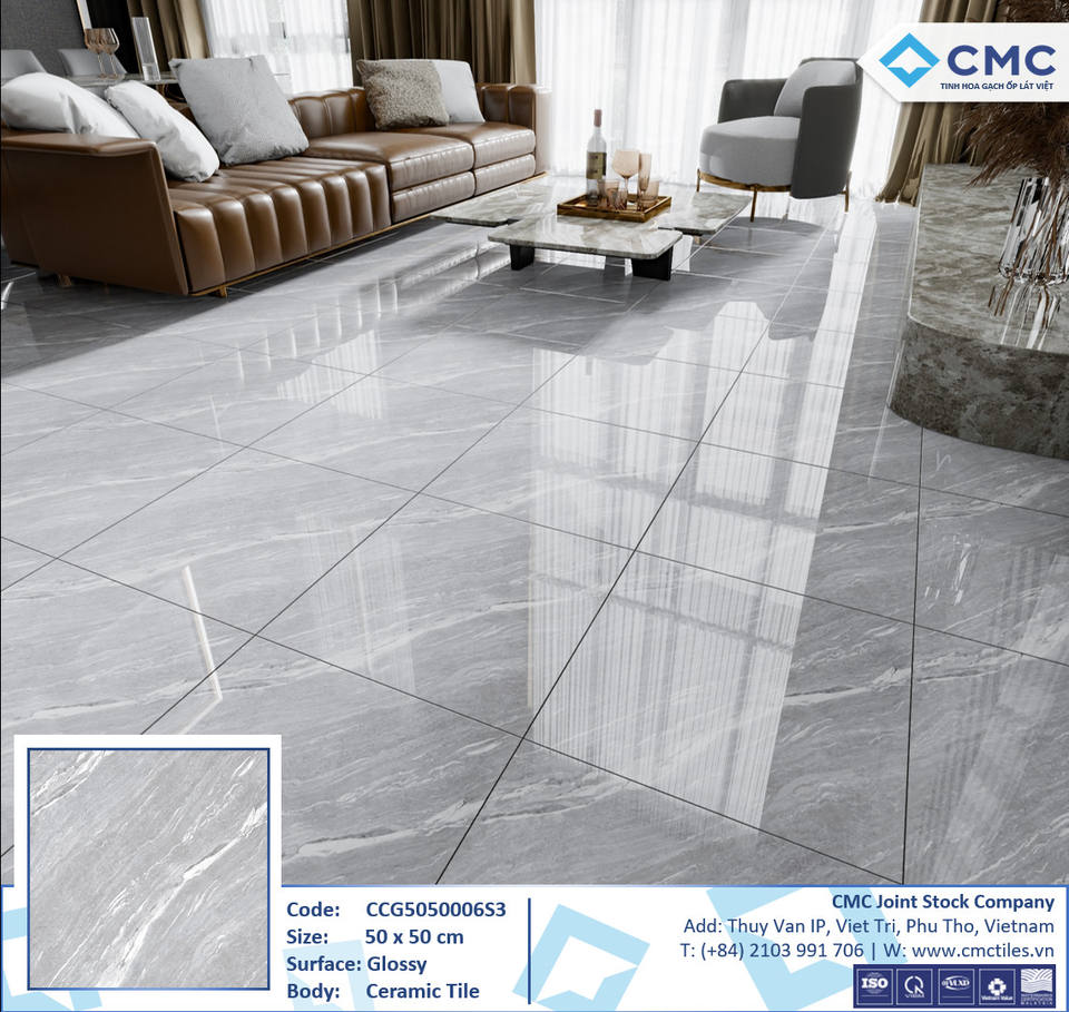 CMC Modern House 500x500mm Glazed Ceramic Porcelain Floor Tiles Antibacterial Grays 9mm Thick 2 Year Warranty Apartment Room