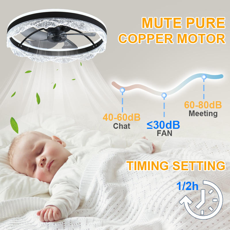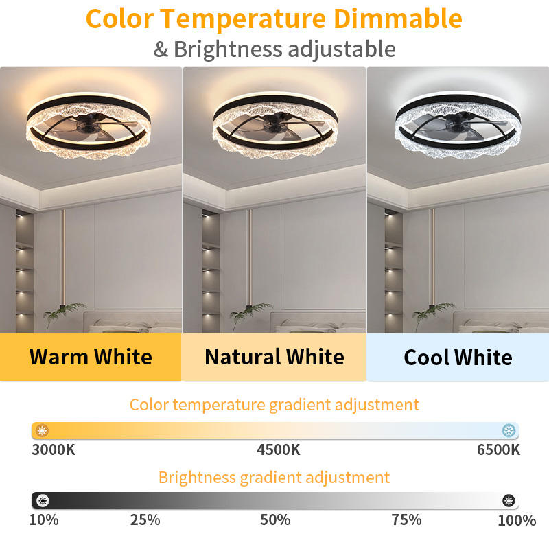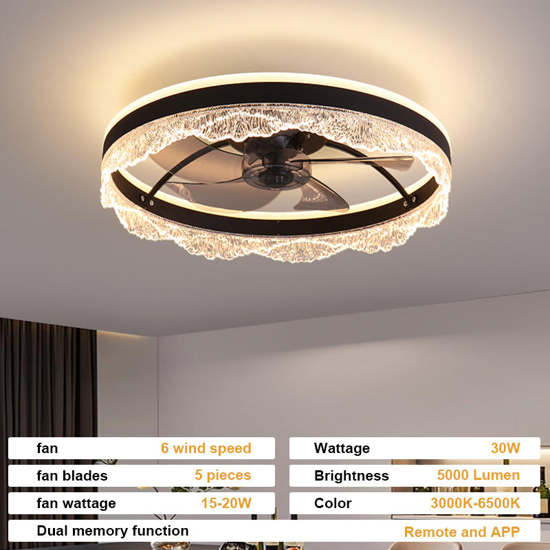 Modern 5-Blade Metal Ceiling Fan for Living Room Adjustable Light , 6-Speed Dimmable & Timed DC Motor, with APP/Remote Control