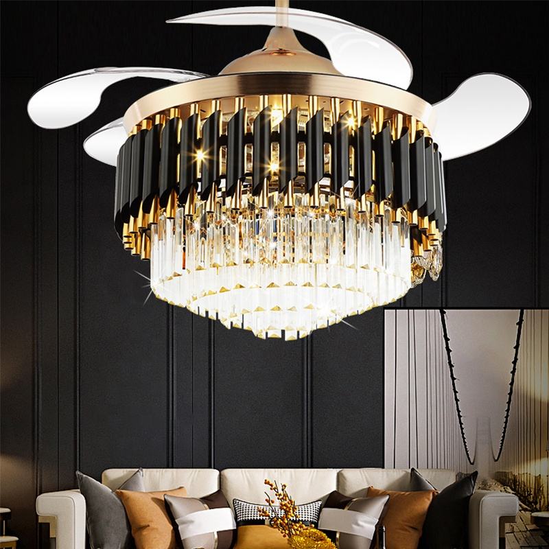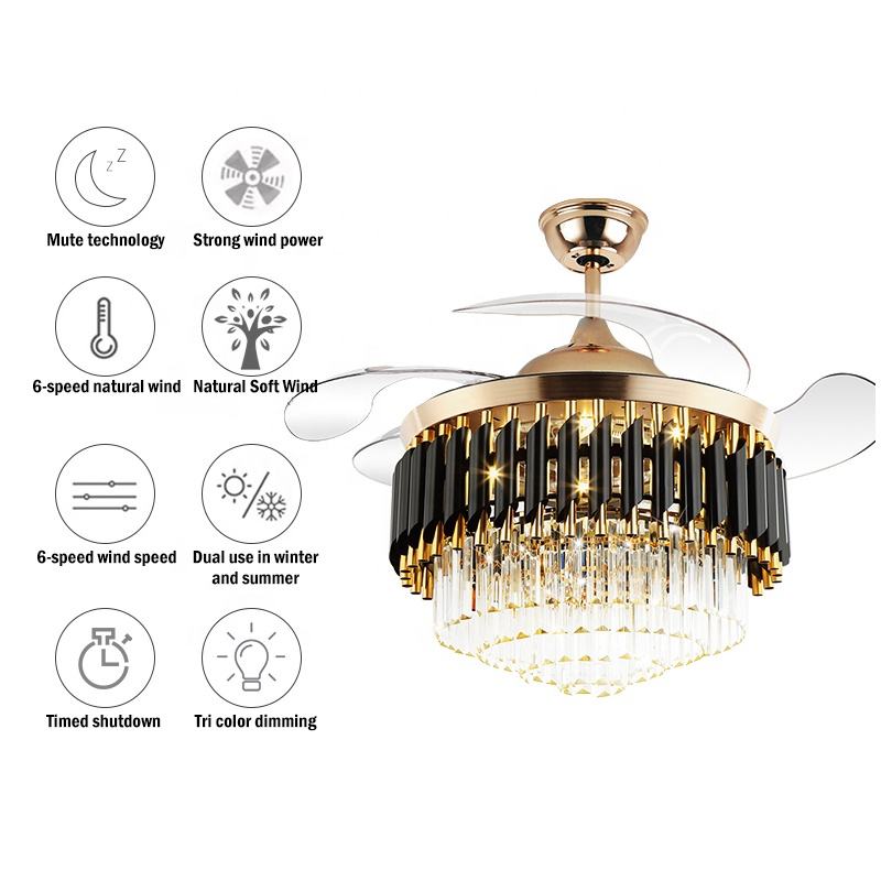 Modern light luxury smart home gold luxury crystal chandelier LED ceiling fan light 6-speed wind speed noise free 42 inches
