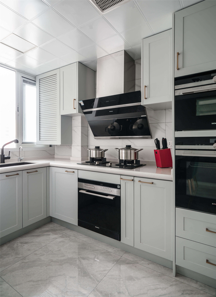 Mango Verde Mate 240/180cm Kitchen Cabinets Minimalist Stainless Steel & Melamine Board for Apartment Use