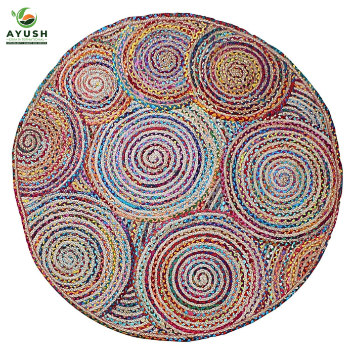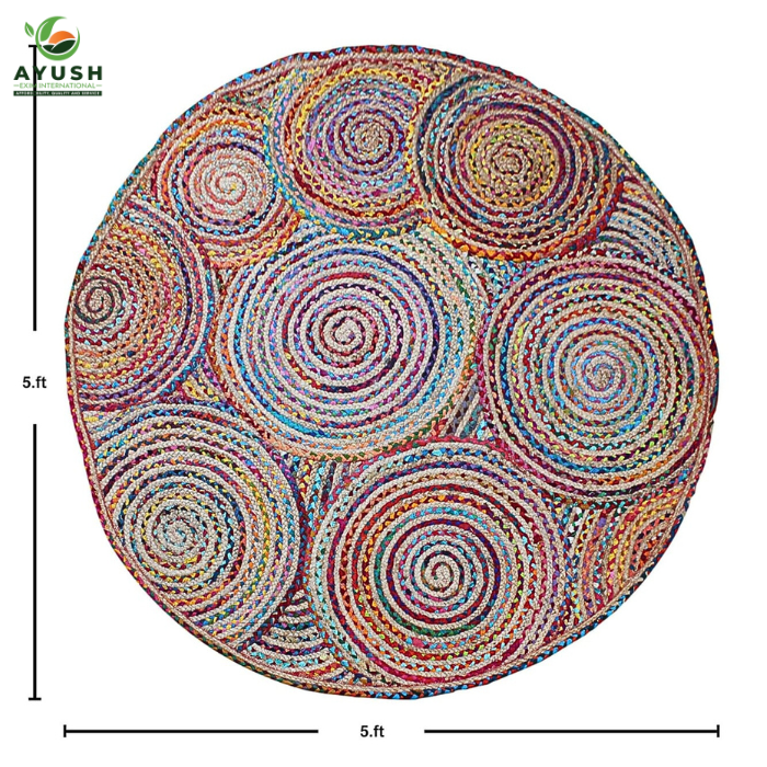Modern living room rug made of jute & cotton material hand braided Round custom rugs