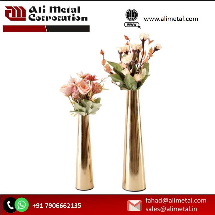 Modern long Metal Flower Vase With Golden Luxury New Design Stylish Ware Flower Vase for home and set of 2 fully customable.