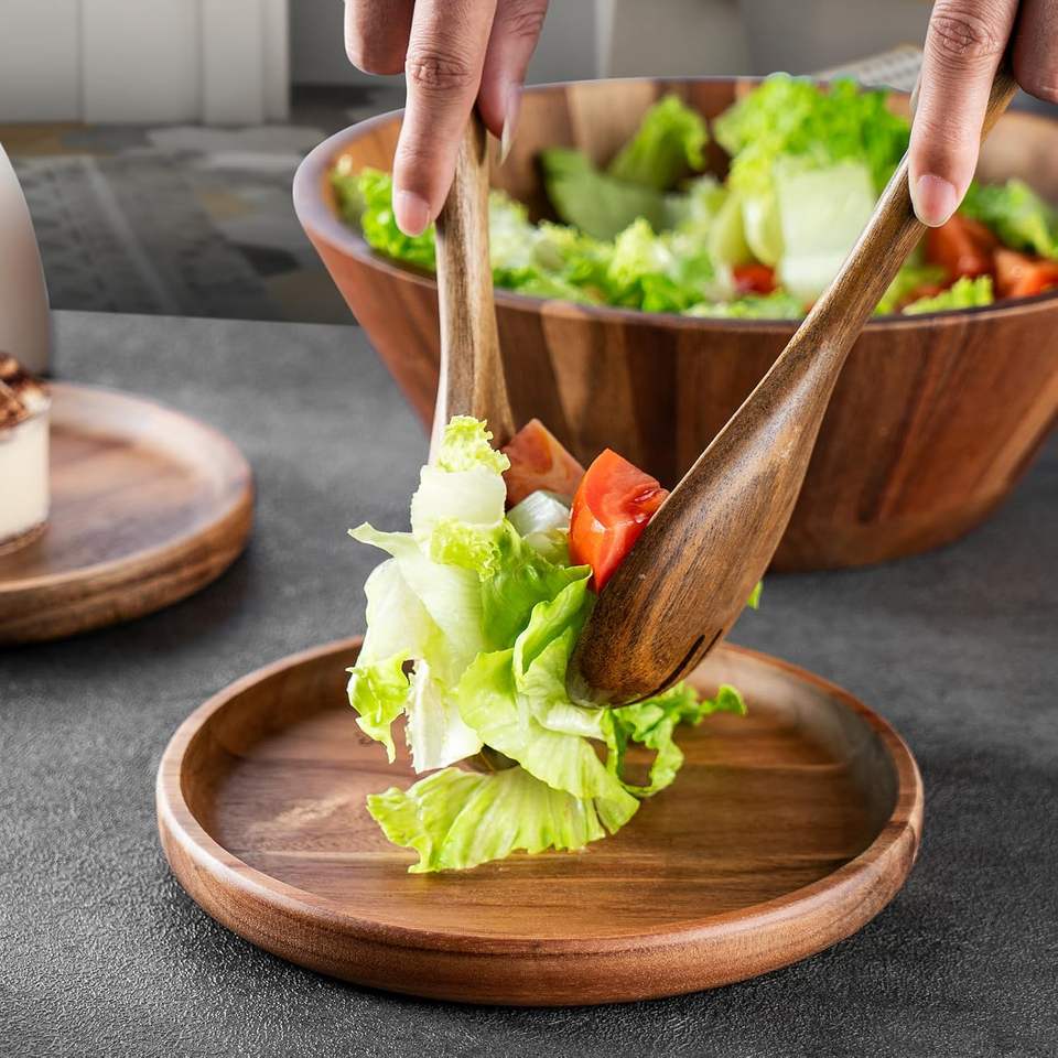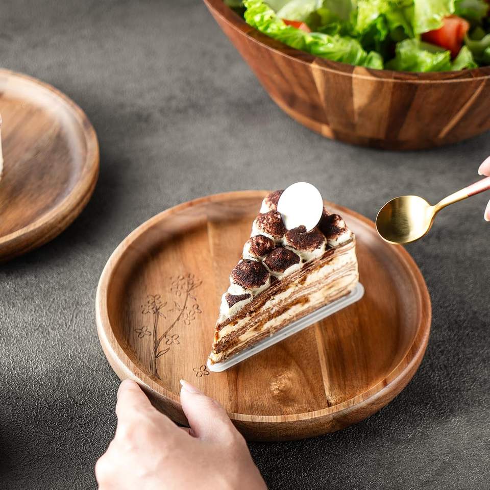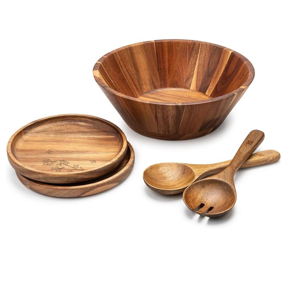 Modern meal serving set of wood bowls and plates wholesale wooden bowl & plate dinner sets