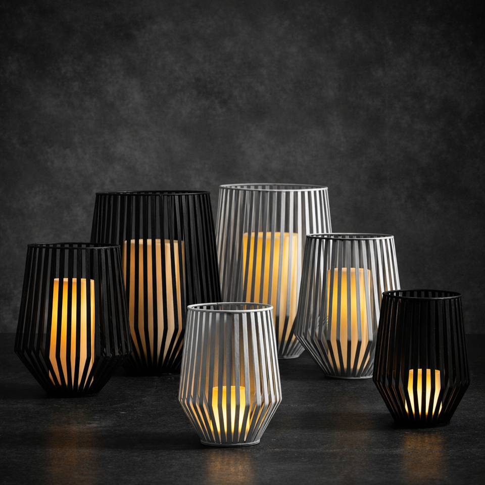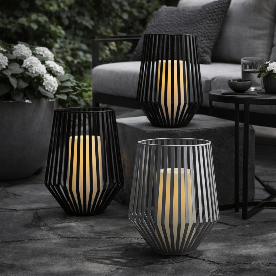 Modern metal candle lantern Minimalist lantern decor Outdoor patio lantern Tabletop candle lantern Floor candle lantern