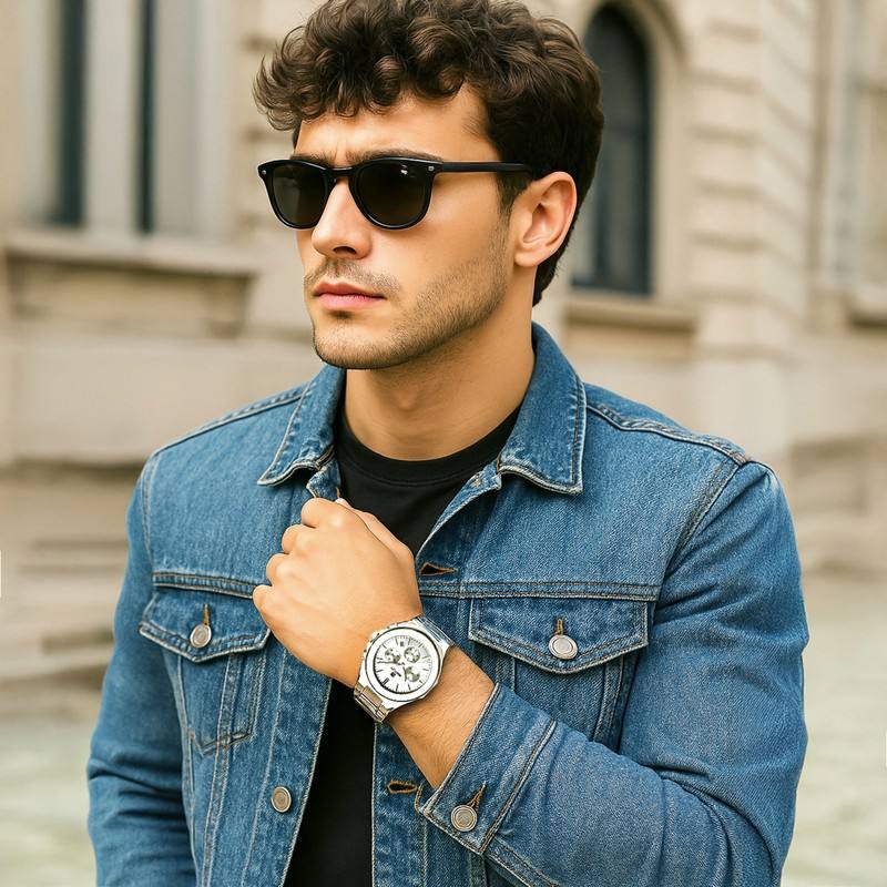 Modern Quartz Timepiece with 24mm Leather Band and Vintage-Styled Waterproof Design Crystal Dial Window
