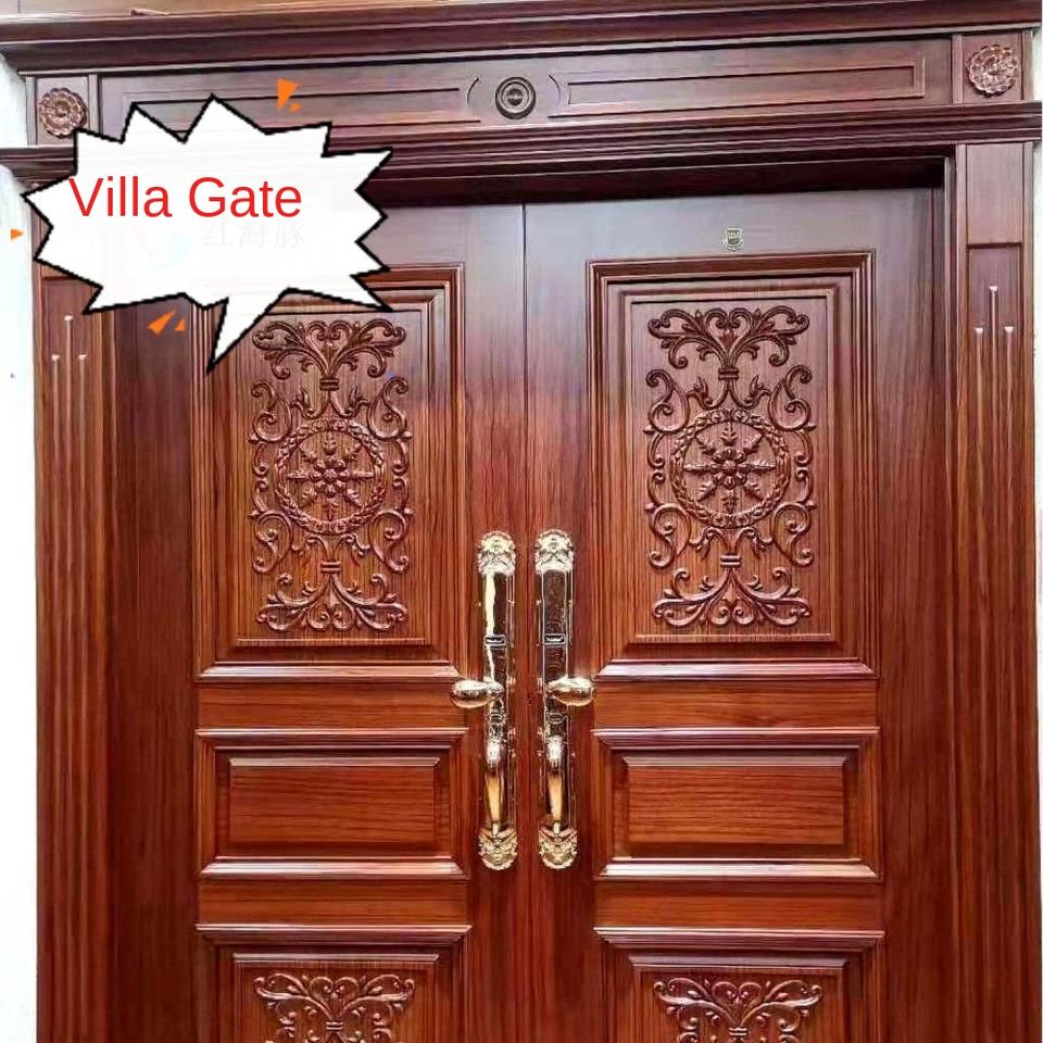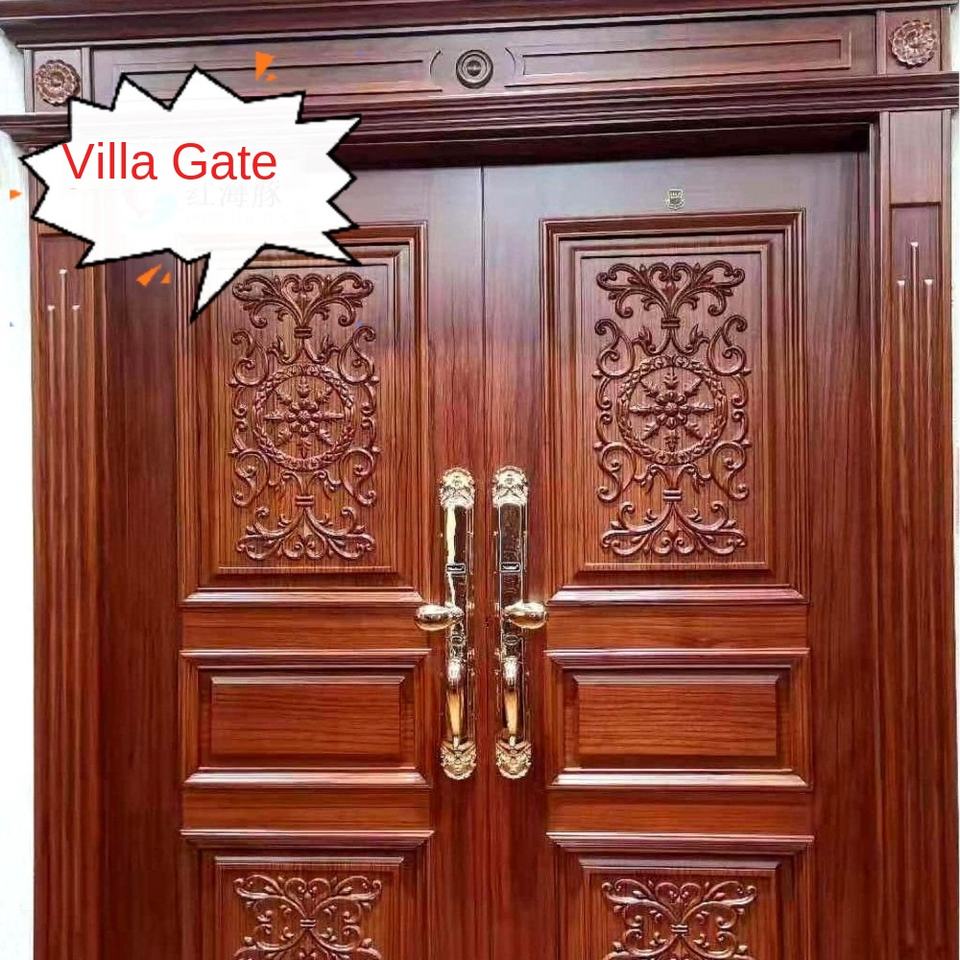 Modern residential villa wooden main entrance front door design exterior antique double-carved solid teak wooden door