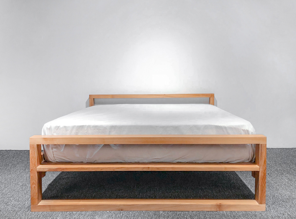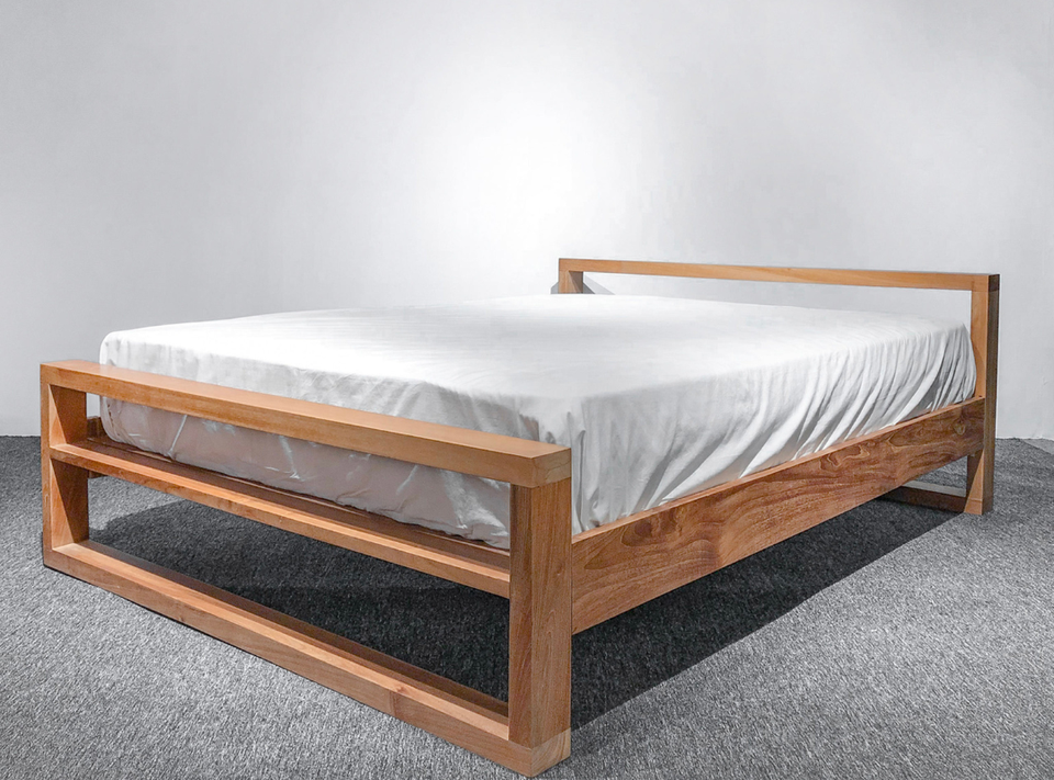 Modern teak bed frame open design solid wood minimalist platform bed wooden durable simple hotel resort home villa indonesia