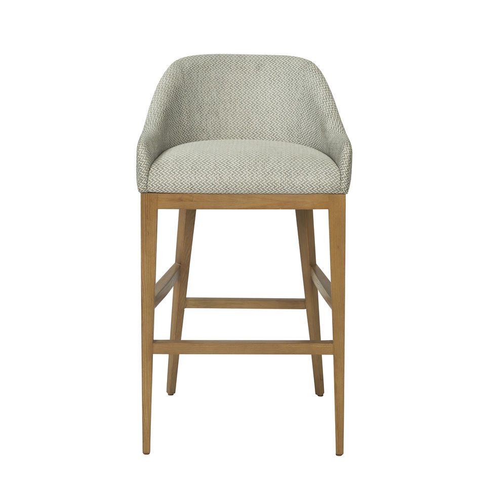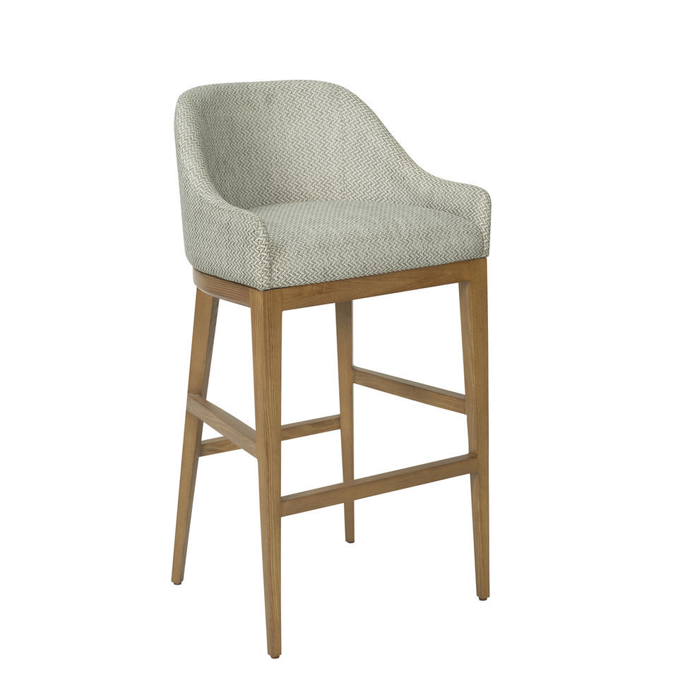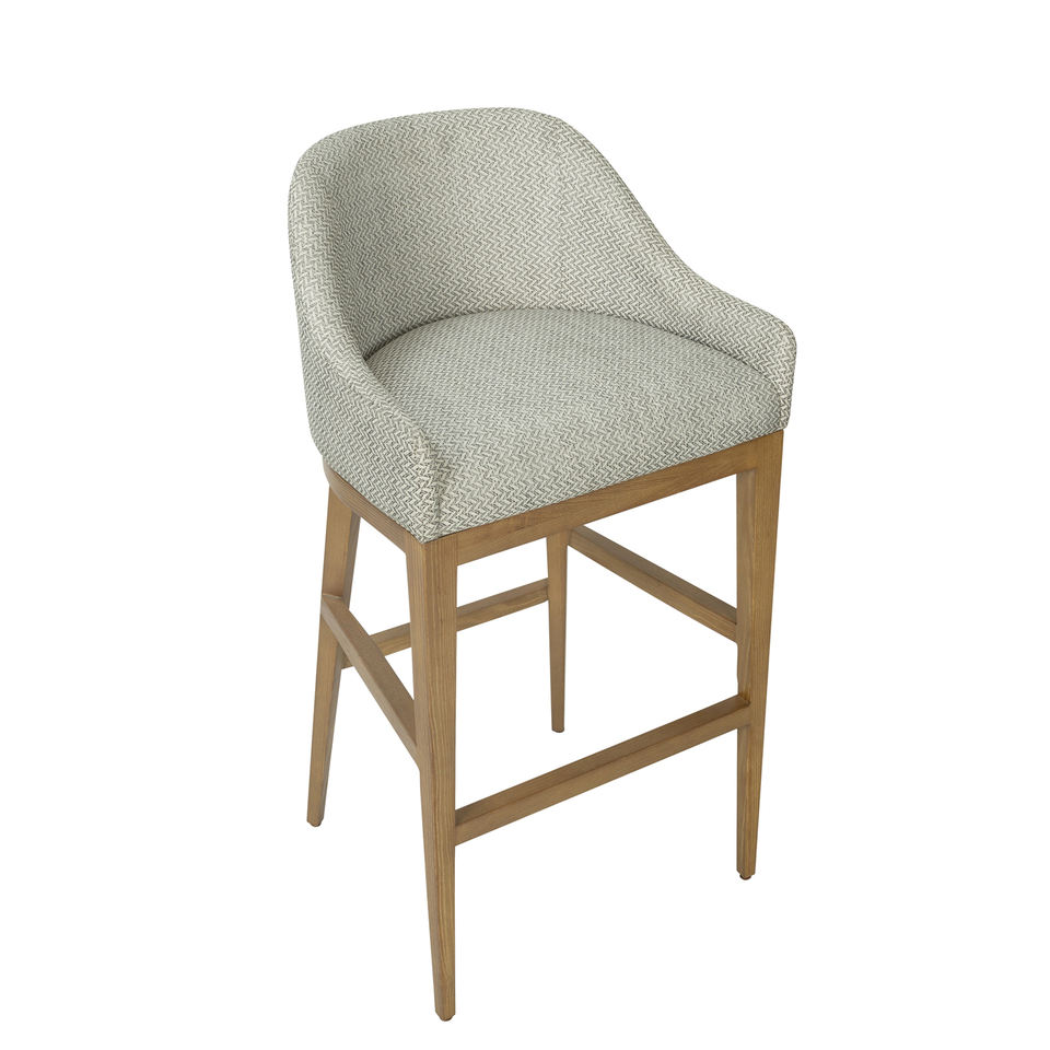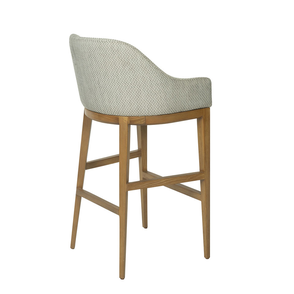 Modern upholstered chair with wooden legs and curved backrest perfect for stylish kitchens, bars, or home dining spaces