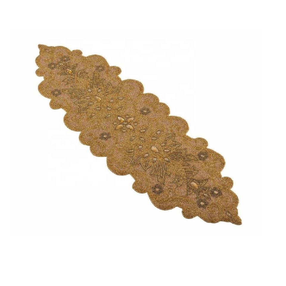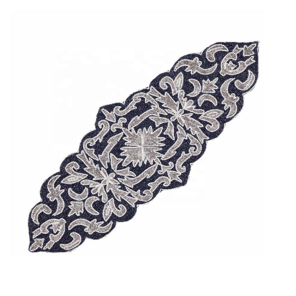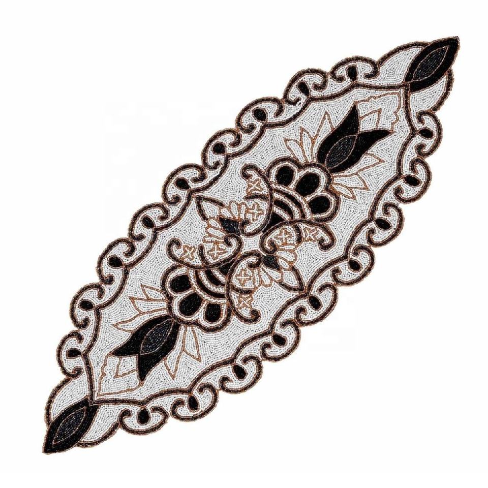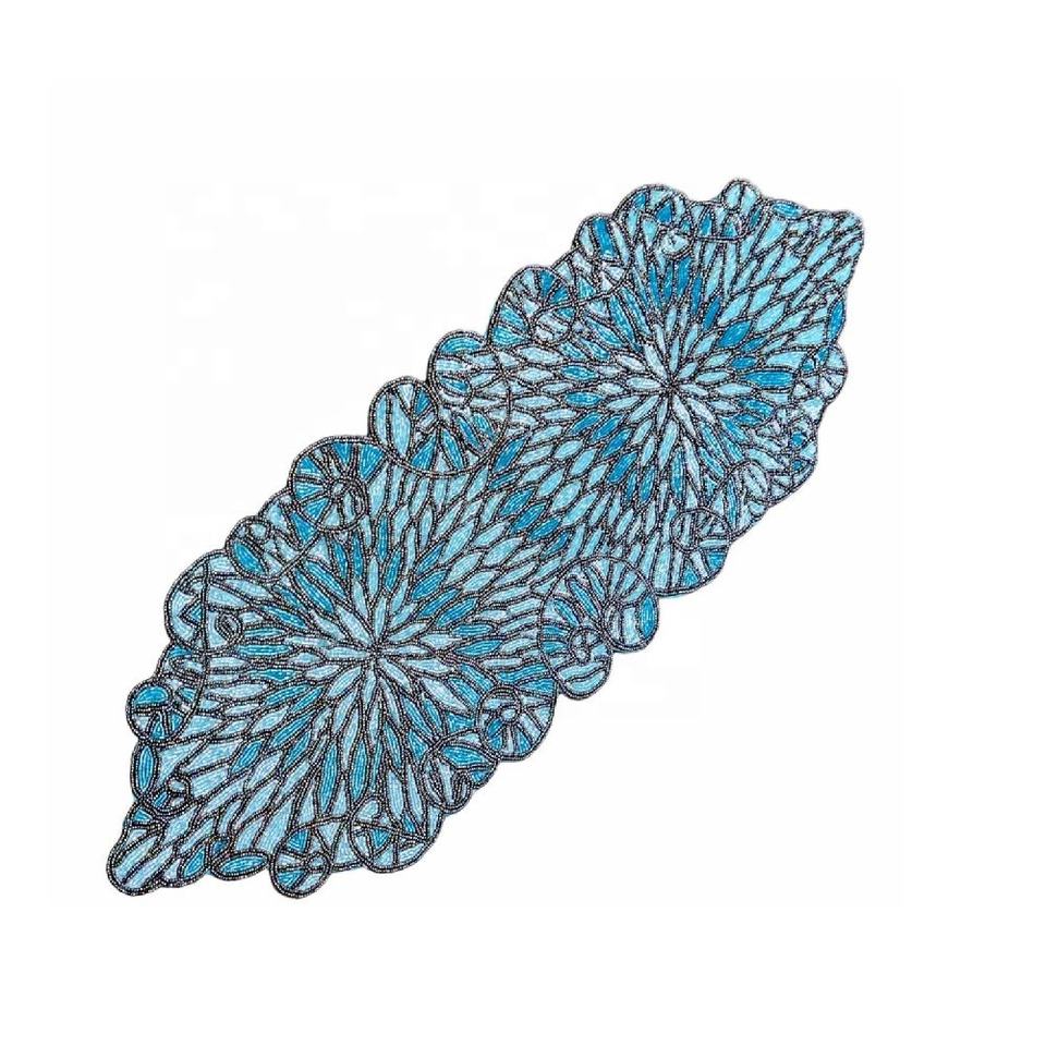 Modernist Floral Beaded Runner Glass Tablemat Charger Plate for Dining Table or Living Room Christmas Occasion Modern Pattern