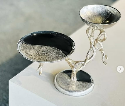 Moderns Style Gold Silver Cookie And Cake Stand And Dome Bowls Trays With Floral Pattern Stainless Steel Tier Stand