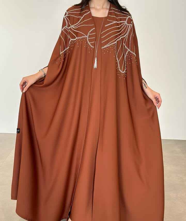 Modest Dubai Arabic Girls Abaya Best Selling Abaya with Beautiful Golden Embroidery Work and Matching Hijab for Party wear