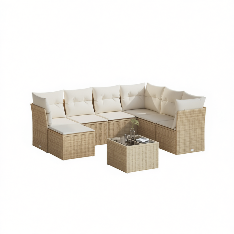 Modular Beige PE Rattan Garden Sofa Set 8 Seater Outdoor Furniture Weather Resistant Contemporary Design