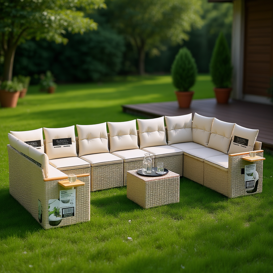 Modular Beige PE Rattan Garden Sofa Set Outdoor Furniture Comfortable Contemporary Design