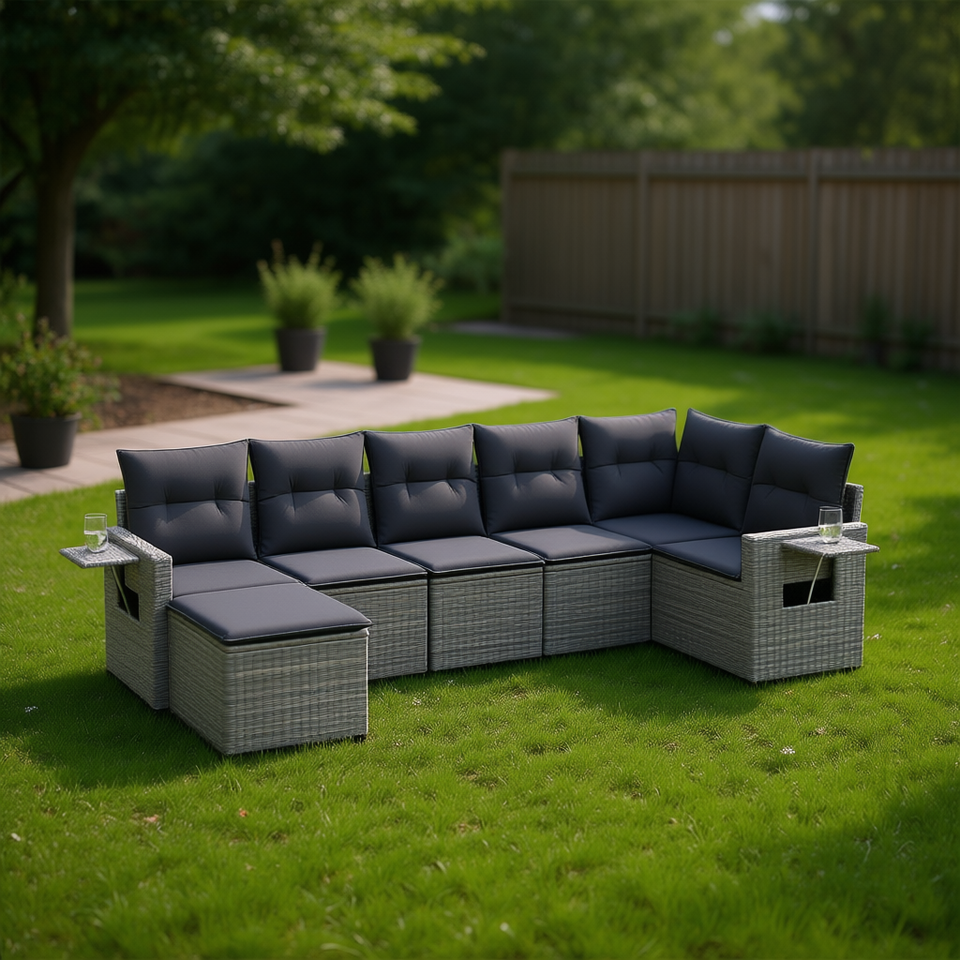 Modular Grey Pe Rattan Garden Sofa Set 7 Piece Outdoor Furniture Contemporary Design Weather Resistant