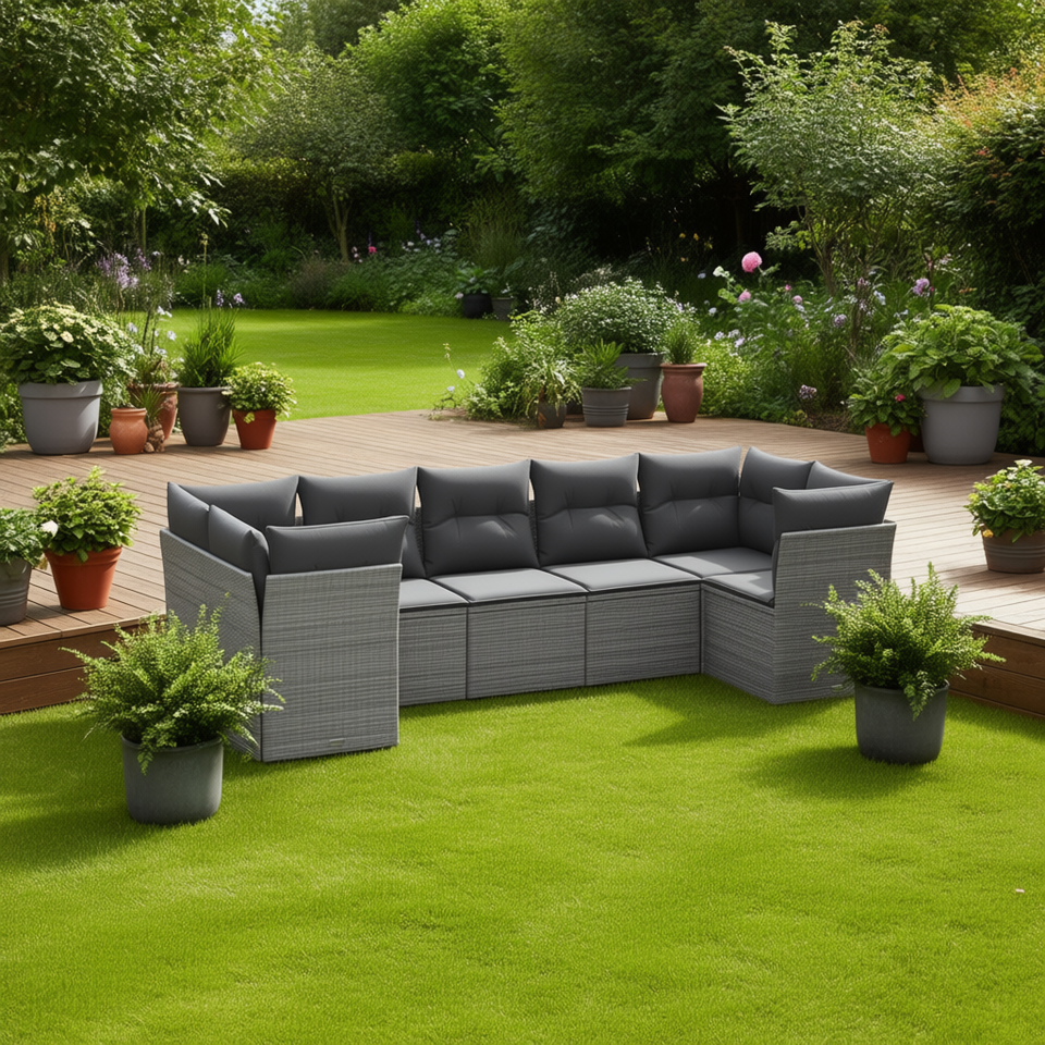 Modular Grey Pe Rattan Garden Sofa Set 7 Piece Outdoor Furniture Weather Resistant Contemporary Design