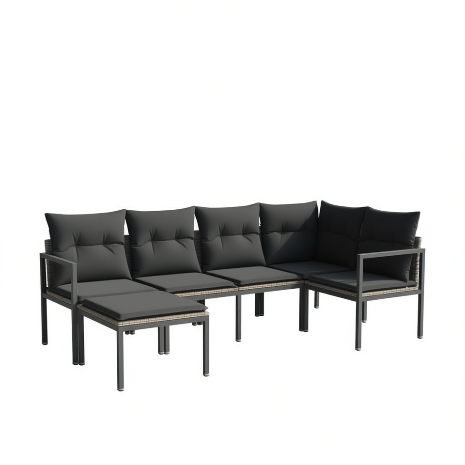 Modular Grey Poly Rattan Garden Sofa Set Steel Frame 6 Seater Outdoor Furniture Contemporary Design
