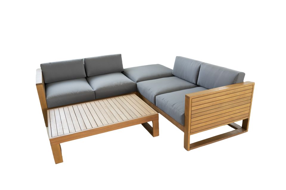Durable Modern Comfortable Outdoor Wooden Sofa Set L-Shaped Sectional Patio Lounge Coffee Table for Living Room Hotel/Courtyard