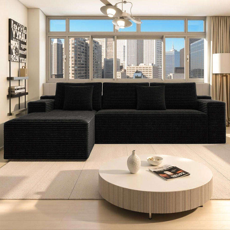 Modular Sectional Sofa Set Modern Sofa Bed Eco-Friendly Design Plush Corduroy Fabric Wood Legs No Assembly Required 2PC Free