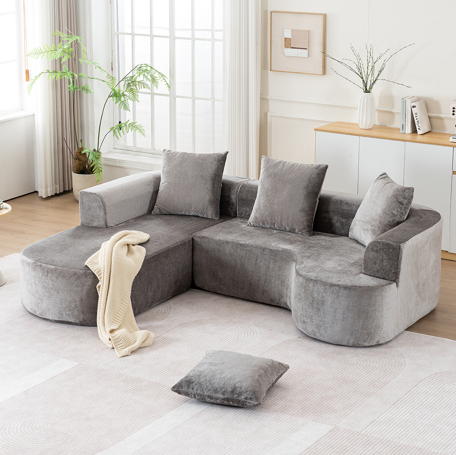 Modular Sectional Sofa U-Shape Convertible Chaise Modern Sleeper Couch with Memory Foam Deep Seat Wood Legs No Assembly Required