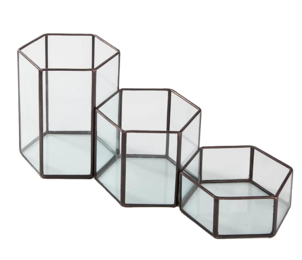 Modular Table Top Decor - Geometric Planter Black Clear Valentine Print Handmade Silk Metal Cylinder