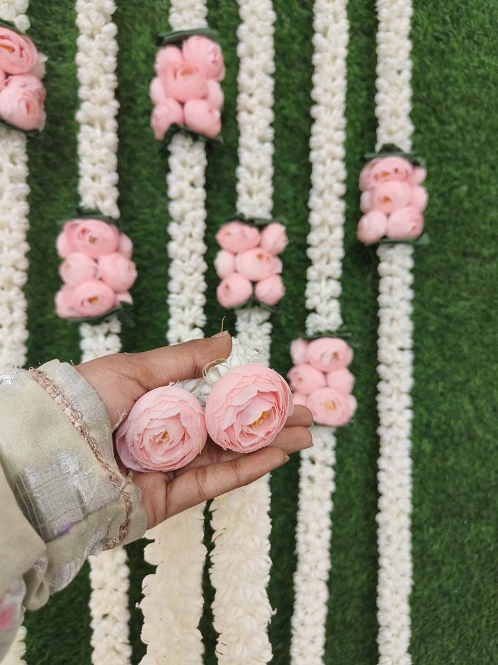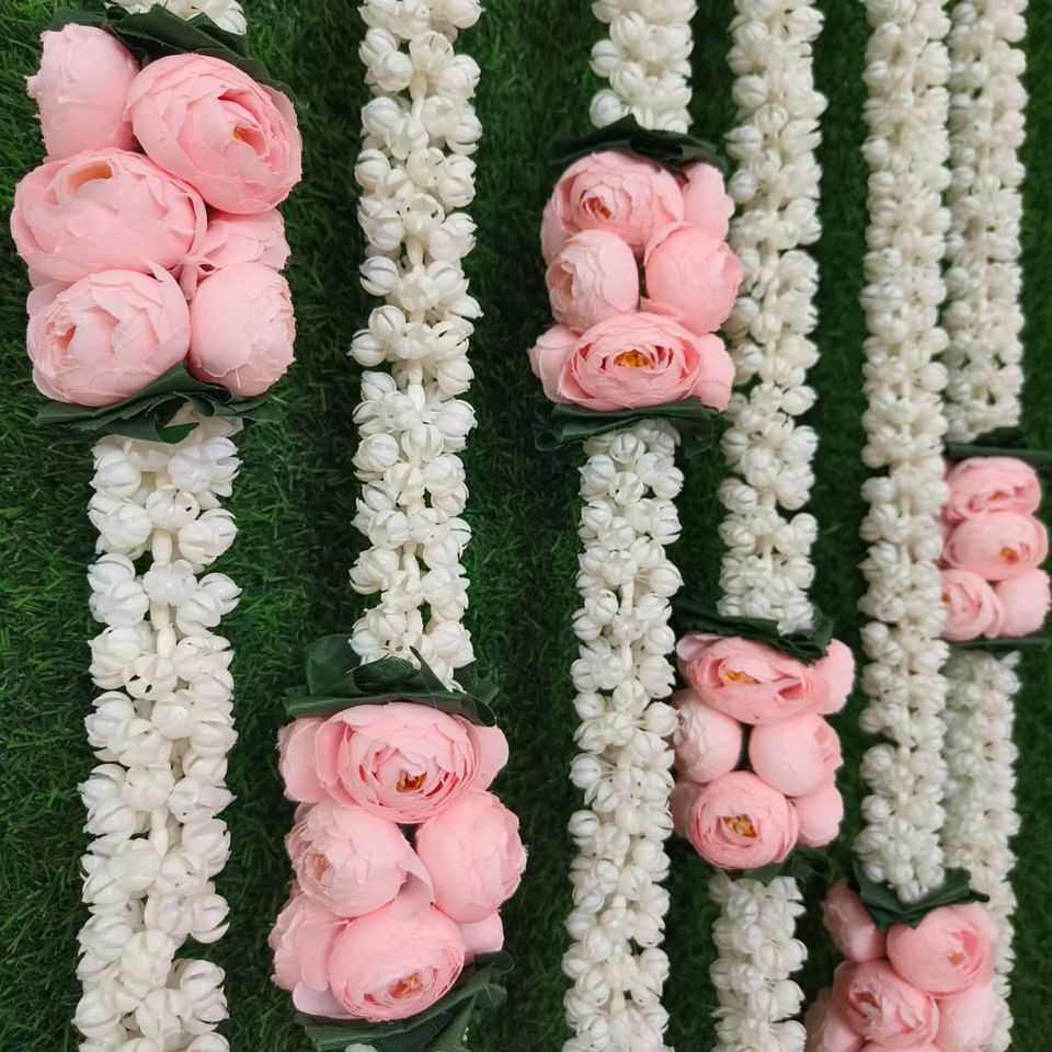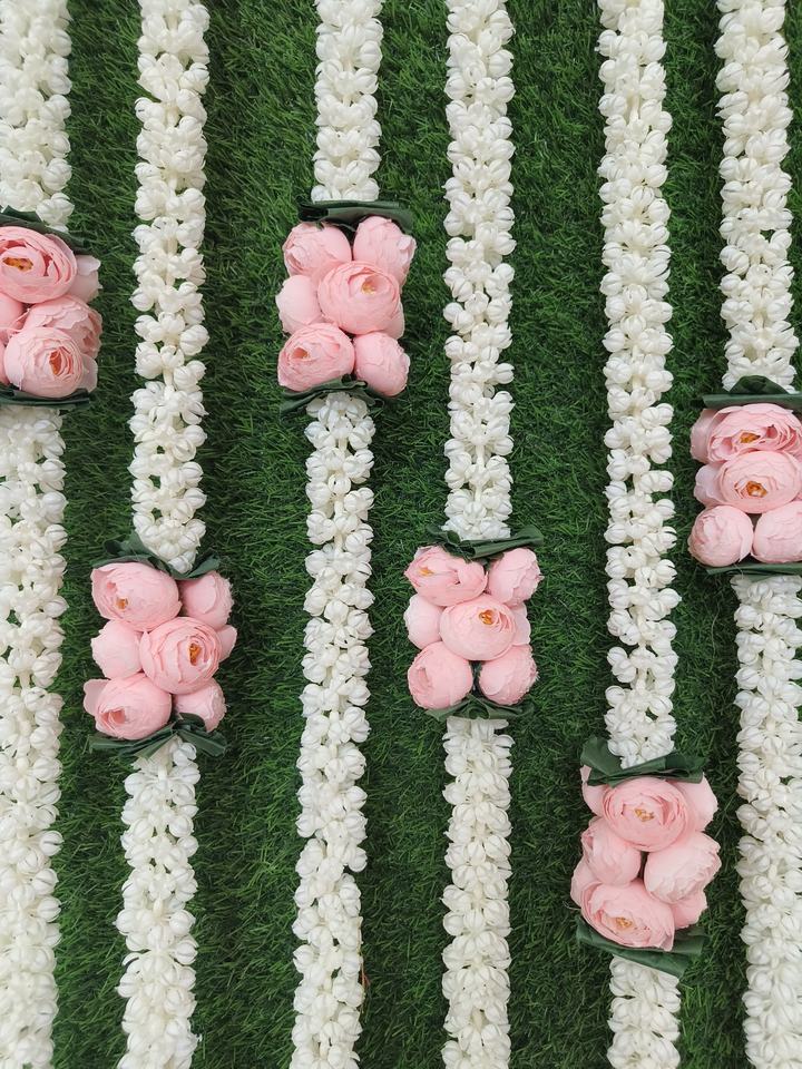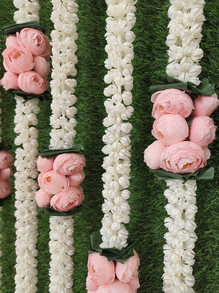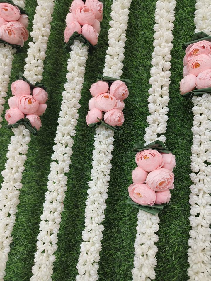 Mogra Jasmine Ranunculus Flower Garland Indian Wedding Decor Mandap Mehndi Sangeet Stage Backdrop Housewarming Decoration