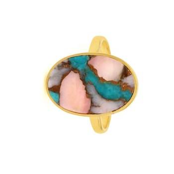 Product Name:Natural Pink Opal Copper Turquoise Silver Rose Gold Plated Bezel Ring