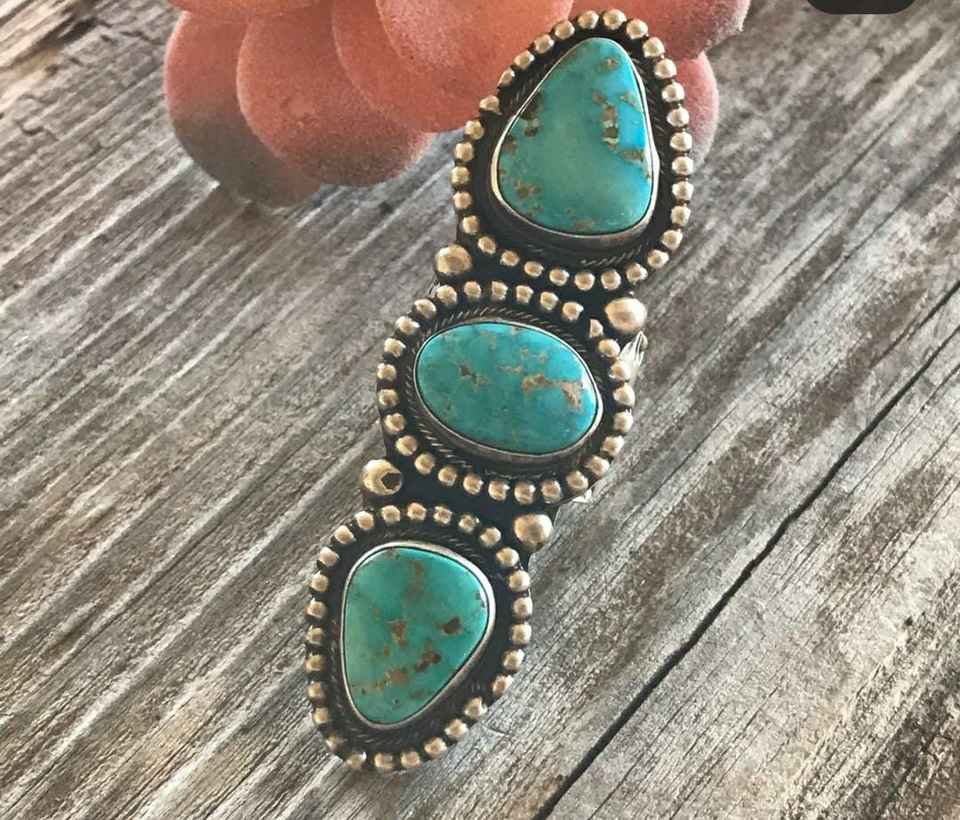 Keyword:Mohave Turquoise Natural Gemstone Handmade Ring Statement Jewelry