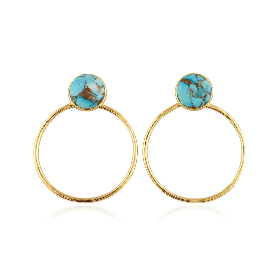 Mohave emerald copper turquoise hoop earring circular designer post back handmade hoop earrings for women for regular wear