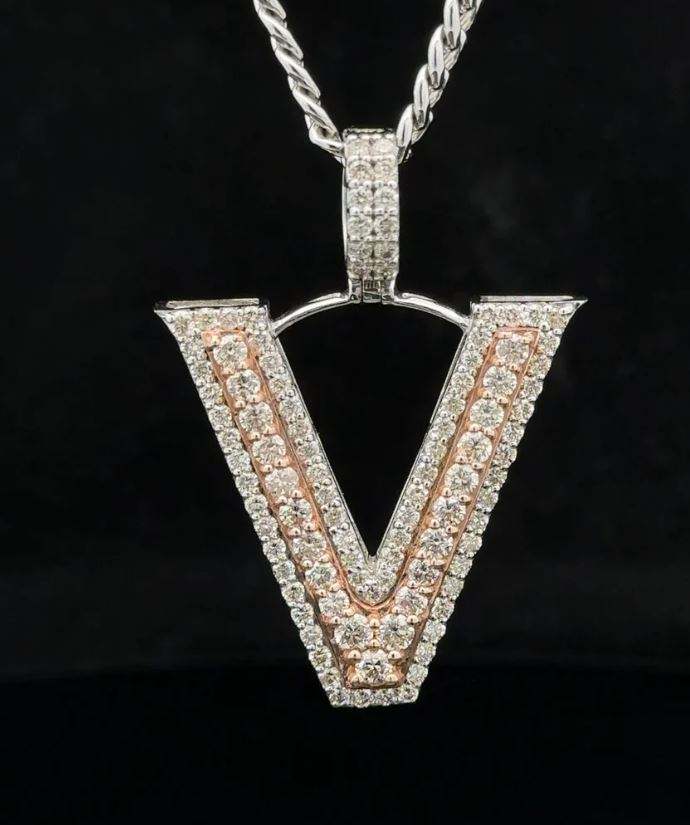 Moissanite Baguette Font Hip Hop Custom Name Necklace,Iced Out Pendant,Initial V Letter Personalized Pendant