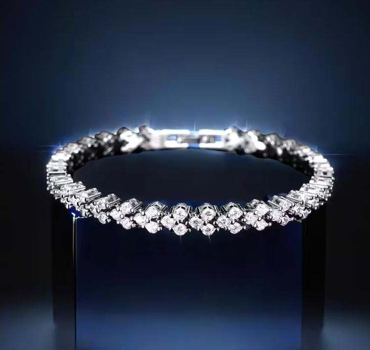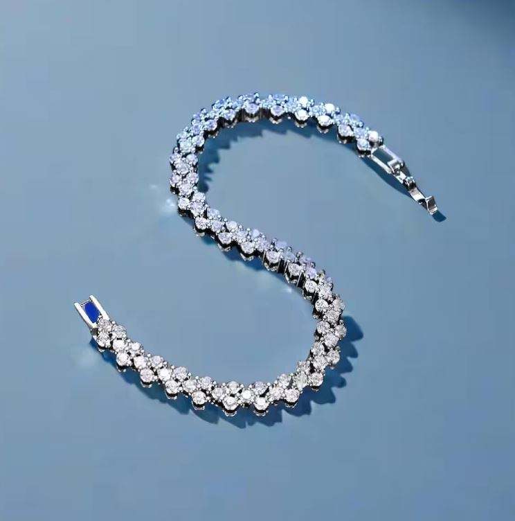 Princess Cut Moissanite Tennis Bracelet Dainty Silver Hip-Hop Style Diamond Bracelet