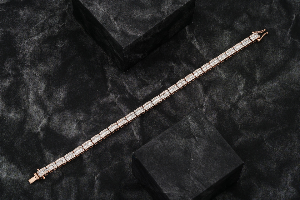 Diamond Brilliant Cut Cuban Tennis Bracelet 14mm 7-8inch Silver Full Rose Gold Plated for Certified Lab Grown Trending Unisex