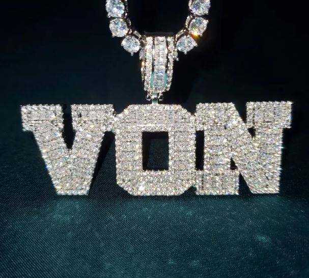 Moissanite Custom Iced Varsity Necklace Initial Name Pendant Bling-Bling Hip Hop Jewelry for Boys & Girls 925 Sterling Silver