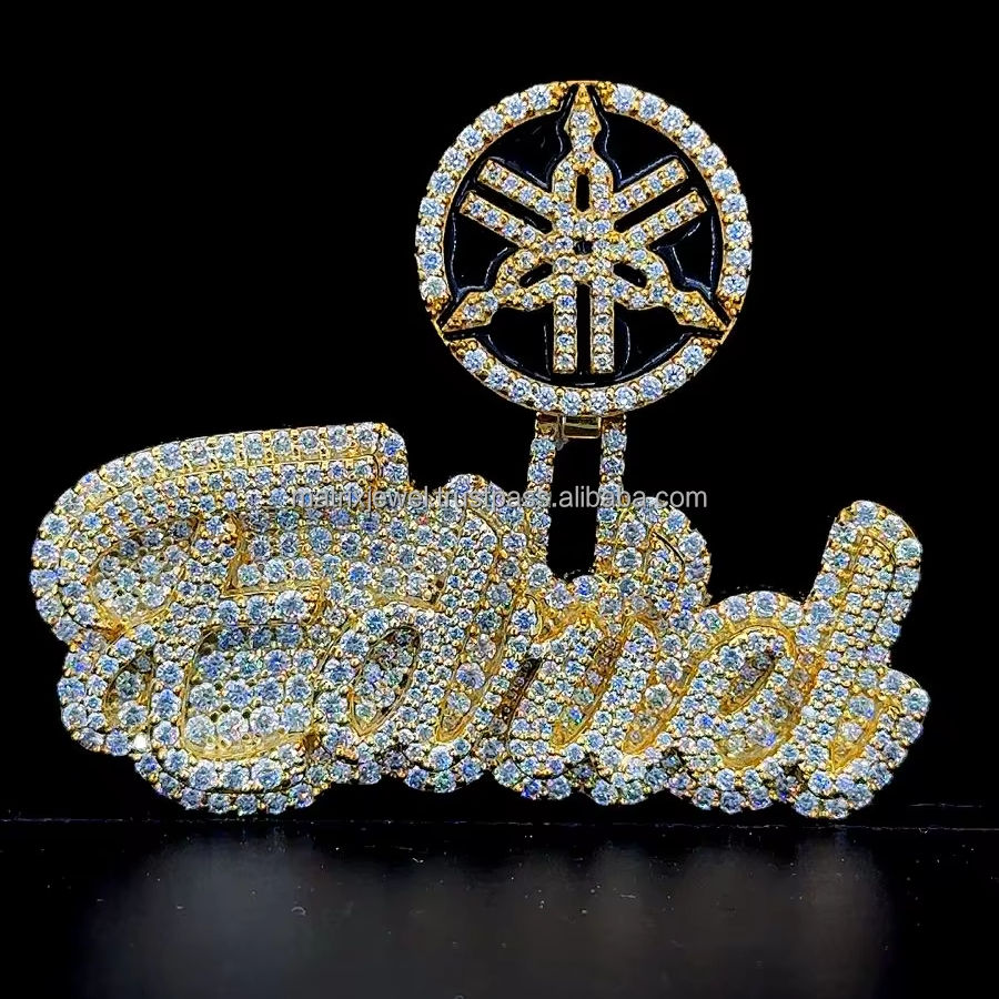 Moissanite Custom Name Pendant Custom Enamel Bail Pendant Cursive Script Font VVS Diamond Jewelry Hip Hop Style Necklace