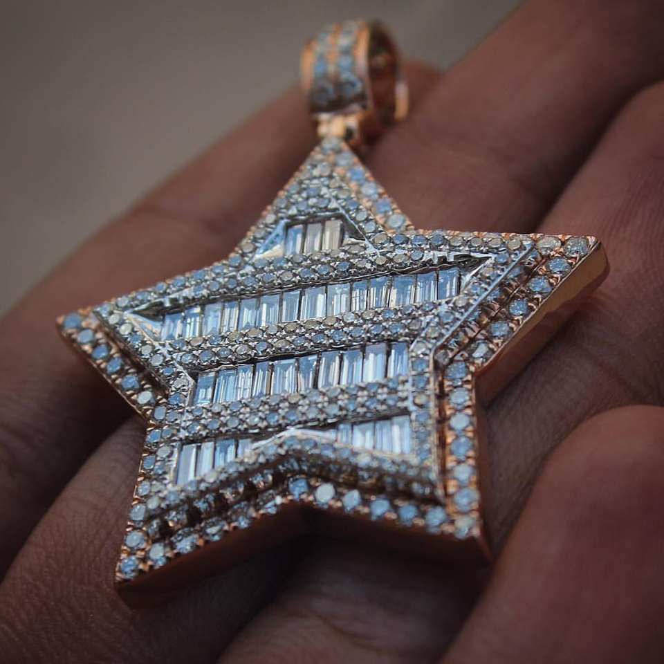 Moissanite Diamond 14K White Gold Pendant for Men & Women Moissanite Iced Out Super Star Pendant Necklace for gift