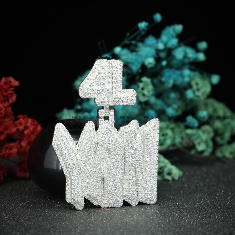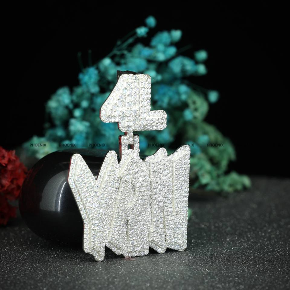 Moissanite Diamond Custom Name Number Pendant in 925 Sterling Silver Hip Hop Jewelry for Men & Women by Phoenix Enterprise