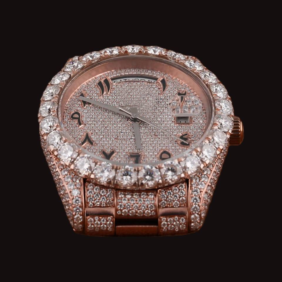 Moissanite Diamond Fully Iced Wholesale Price Custom Watch Arabic Numerals Auto for Features Man's Fashion Hip-Hop Watch