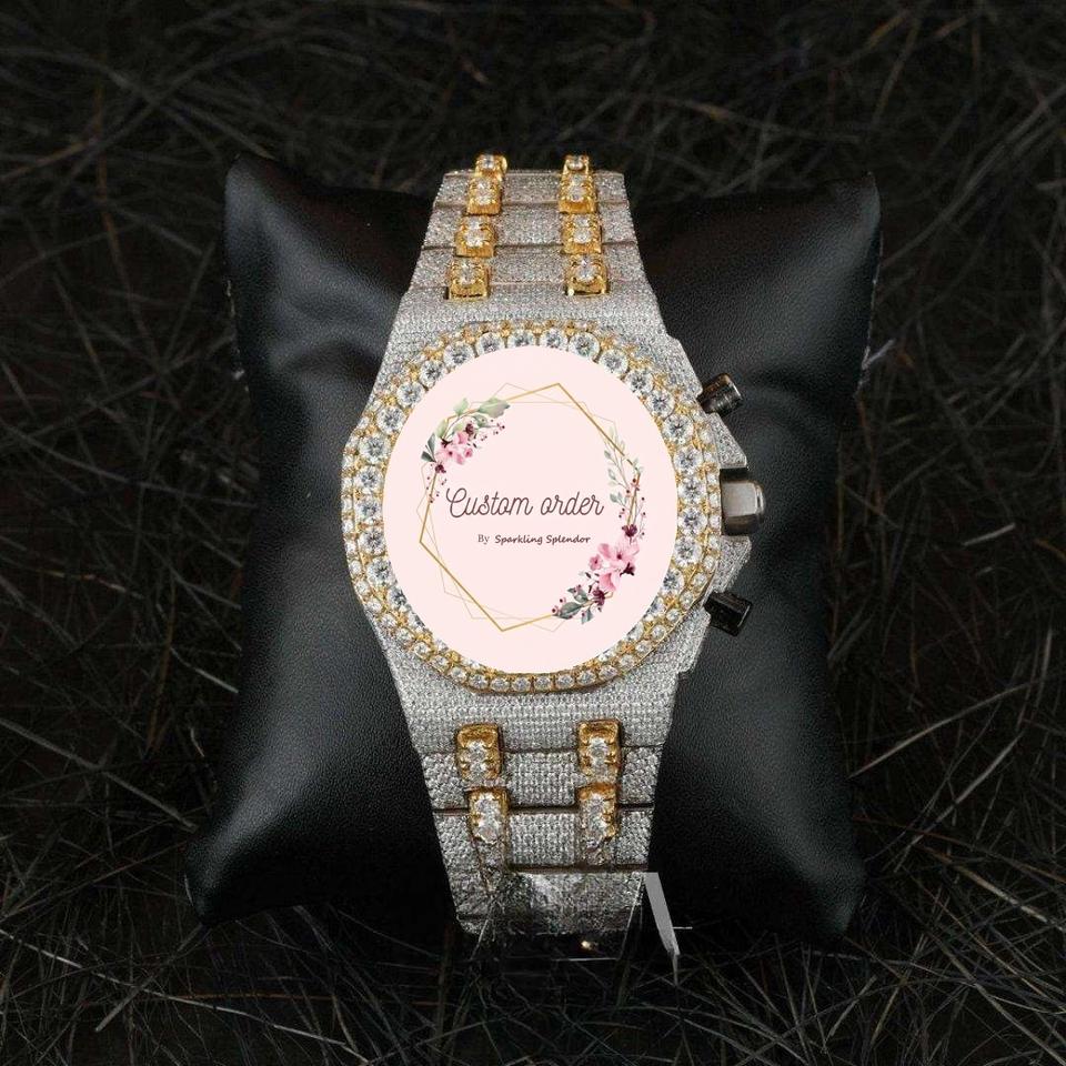Moissanite Diamond Hip Hop Analog Watch Made in Stainless Steel From Casual to Formal Wear Designed for Mens Daily Life