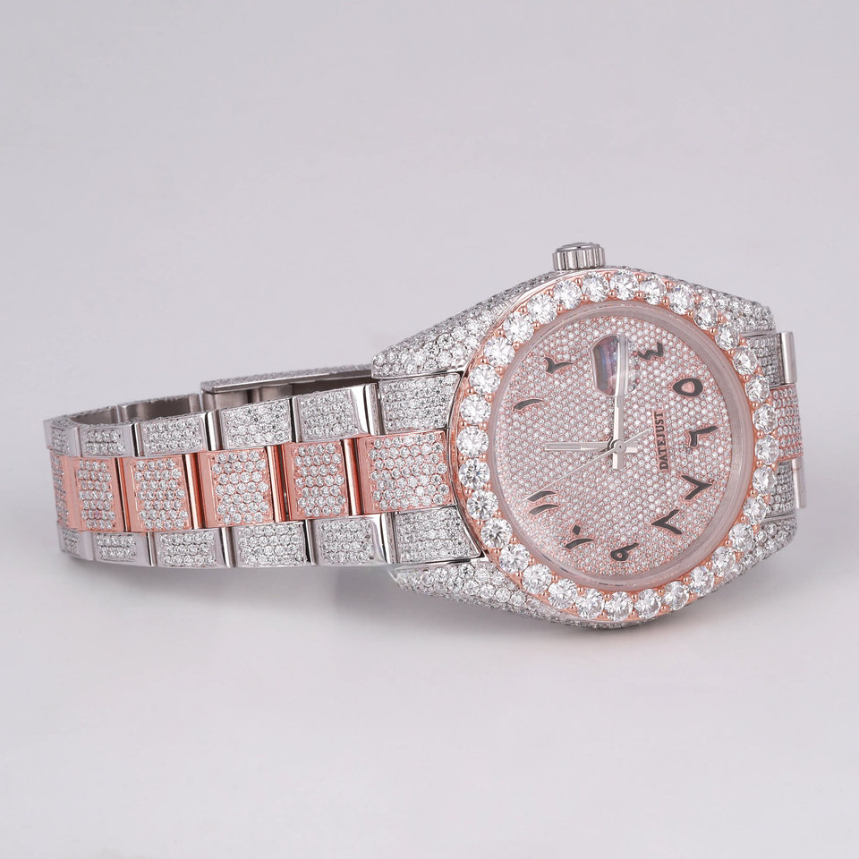 Moissanite Diamond Hip Hop Watch Men's Luxury Watch VVS Clarity Diamond Watch 14k Rose Gold and 925 Sterling Silver Jewelry