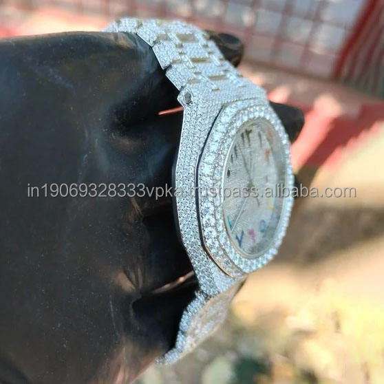 Moissanite Diamond Iced Out Mechanical Analog Watch for Men Colorful Numerical Luxury Modern Hip Hop Style Best Gift for Him